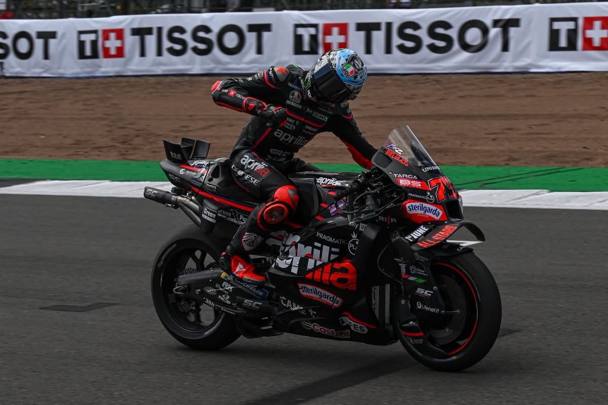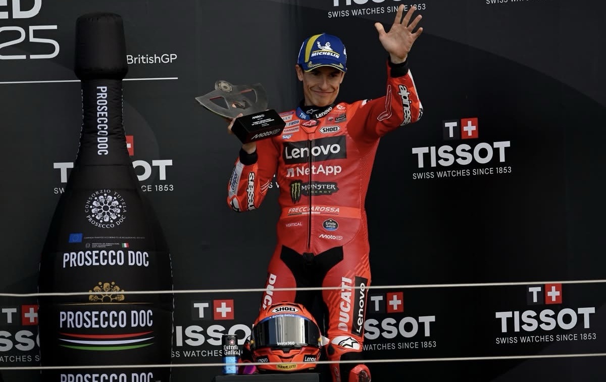 Marc Márquez, incapable de revenir sur son frère, termine second, laissant Álex Márquez triompher pour la deuxième fois en Sprint à Silverstone. Fabio Di Giannantonio complète le podium. Marco Bezzecchi est 4e tandis que Johann Zarco sauve une 5ᵉ place musclée.