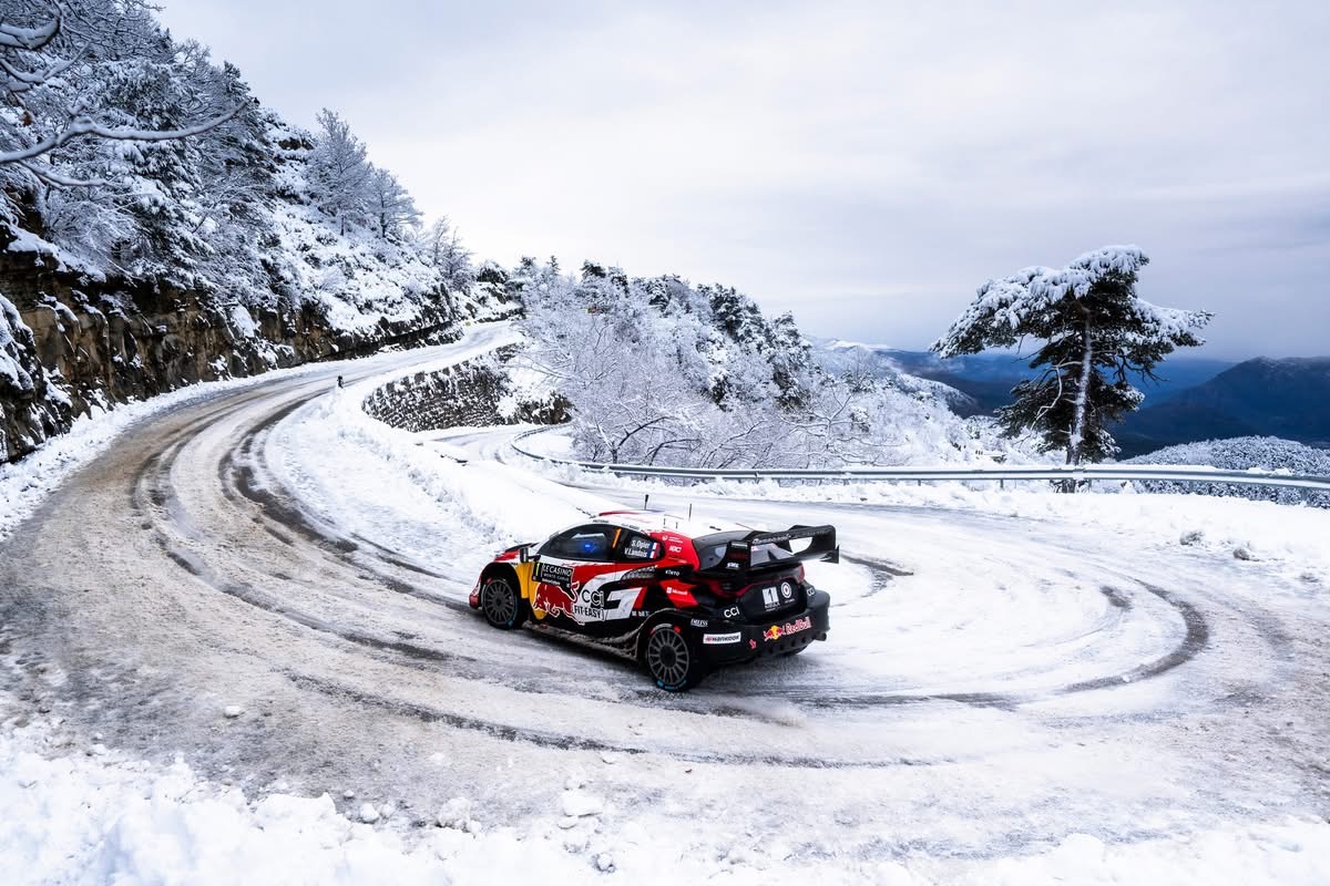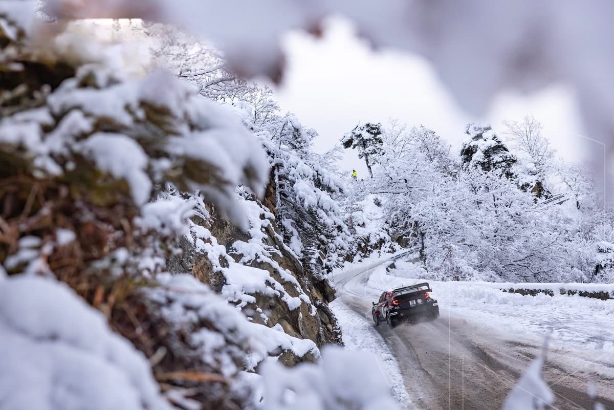 Gap se réveille sous un manteau blanc. La Bréole/Bellaffaire devient un exercice de survie. Sébastien Ogier signe le meilleur temps, Elfyn Evans limite les dégâts, Oliver Solberg assure. Un triplé Toyota se dessine. Puis survient l’image qui marquera ce Monte‑Carlo : La Toyota du jeune leader suédois glisse, traverse une clôture, disparaît dans un nuage de neige. Un souffle suspendu. Sans couper les gaz, il revient, repart et signe… le scratch. Un instant de sidération. „J’ai eu beaucoup de chance“, admet‑il, encore secoué. Le soir, Monaco retrouve le WRC. Sous la pluie, Adrien Fourmaux claque un scratch, Takamoto Katsuta (Toyota) brille. Oliver Solberg, auteur d’un tête‑à‑queue, limite les pertes. Avant la dernière journée, il conserve près d’une minute d’avance. Une marge rare dans un Monte‑Carlo aussi instable.