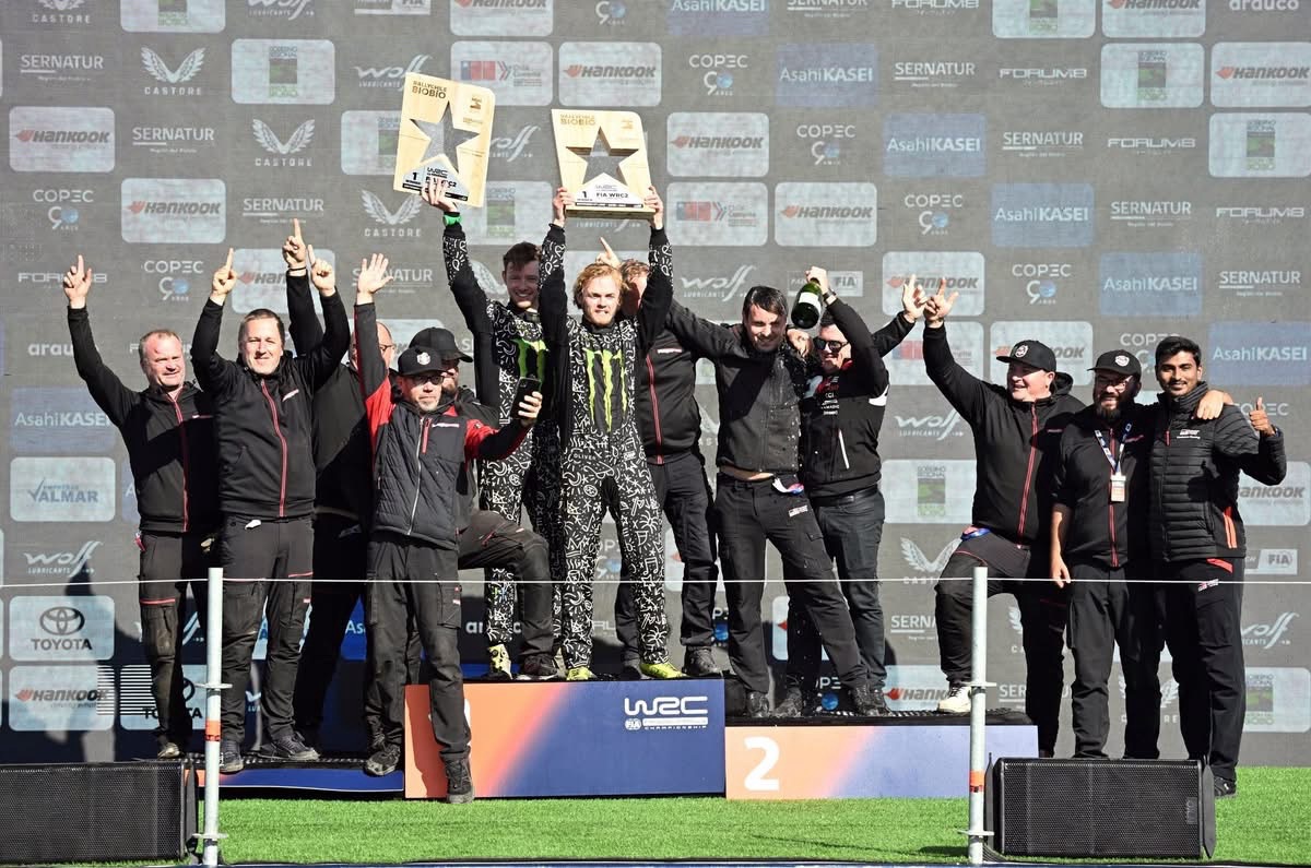 Oliver Solberg (Toyota) décroche leur 5ᵉ victoire de la saison et le titre mondial, exorcisant le souvenir amer de leur défaite au Chili en 2024. 9ᵉ au classement général, ils devancent Nikolay Gryazin (Skoda) qui complète le podium de la catégorie. Il aura fallu attendre les derniers kilomètres du Rallye du Chili 2025 pour que le destin d’Oliver Solberg bascule définitivement. Aux côtés d’Elliott Edmondson, le jeune pilote suédois a conquis le titre mondial WRC-2, au terme d’une saison où la maîtrise, la vitesse et la résilience ont fait la différence.