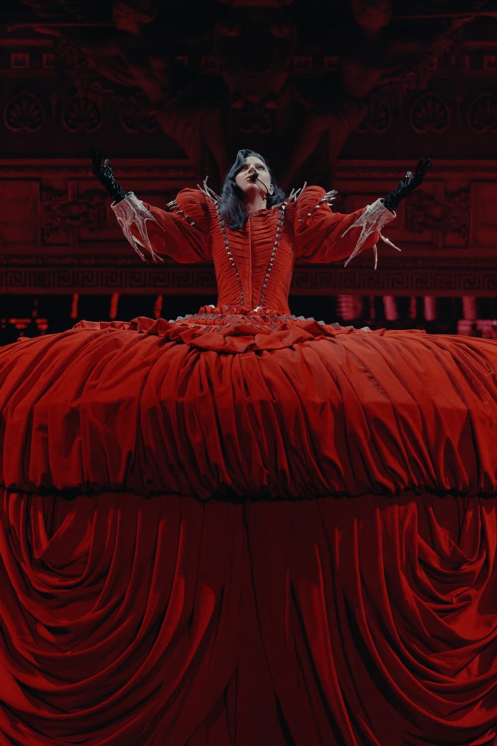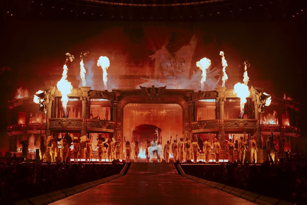 Le rideau s’est levé sur un décor monumental, mi-château shakespearien, mi-Colisée, où les flammes jaillissaient des tours. Lady Gaga est apparue perchée sur une robe-cage rouge carmin, entonnant „Bloody Mary“, „Abracadabra“ et „Judas“. Tout était pensé pour plonger le public dans une fresque sombre et maximaliste, où la mort et la renaissance s’entrechoquent. Les danseurs, silhouettes noires aux gestes squelettiques, accompagnaient cette plongée dans un univers baroque et grotesque, à la fois kitsch et sublime. On retrouvait l’esprit de ses premiers tubes, mais magnifié par une scénographie digne d’un opéra halluciné.