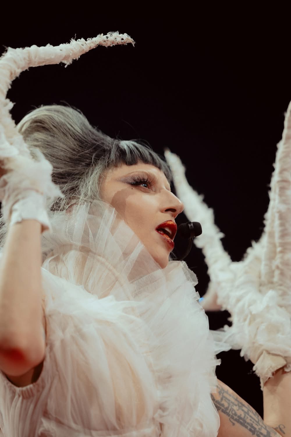 Dans le deuxième acte, „And She Fell Into A Gothic Dream“, Lady Gaga s’est allongée dans un tombeau hanté pour chanter „Perfect Celebrity„. Elle a enchaîné avec Disease et Paparazzi, jouant la comédie jusqu’au bout, avançant sur des béquilles comme une héroïne tragique. Sa voix, puissante et immobile même dans la danse, a rappelé qu’elle est autant actrice que chanteuse. Les chorégraphies signées Parrris Goebel ajoutaient une précision chirurgicale à ce chaos flamboyant.