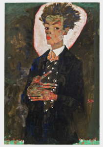 Egon_Schiele_Autoportrait_au_gilet_debout_1911_Gou_15131