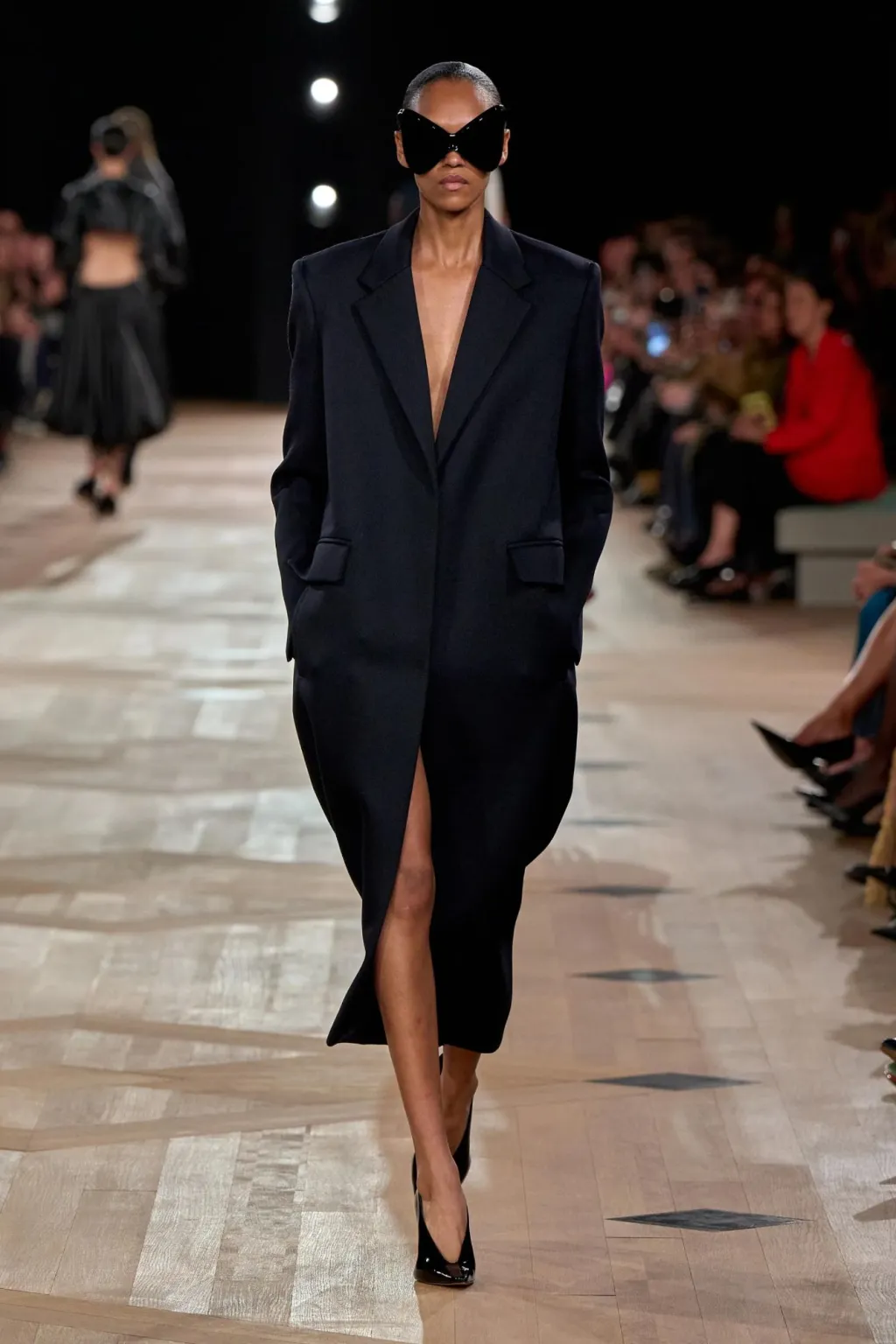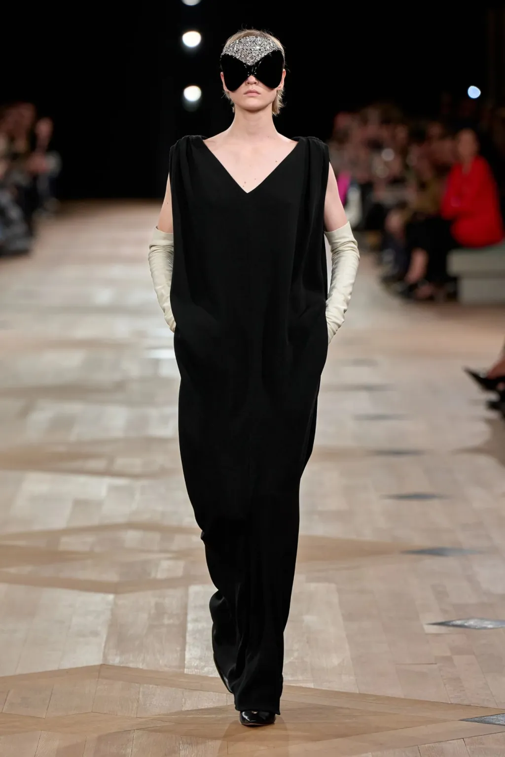 La première robe, noire, courbée dans le dos, donne le ton. Elle évoque les volumes prodigieux de Cristóbal Balenciaga, ce génie du port altier et des silhouettes sculptées. Mais Piccioli ne cherche pas à rejouer les archives. Il s’empare de la méthode, pas du musée. “Je voulais mettre l’humain au centre, aborder la sévérité sans rigidité, et façonner non pas avec la structure, mais avec la coupe”, confie-t-il.Sur le podium, cette philosophie prend forme. Robes drapées, blousons boule, chemises amples : les pièces respirent. Elles s’éloignent du corps pour mieux le révéler. Elles dialoguent avec l’air, avec l’espace, avec le mouvement.