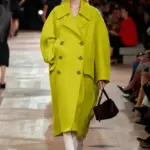 Piccioli ne ressuscite pas le gazar, cette matière rigide inventée par Balenciaga. Il en reprend les principes, les transpose dans ses propres étoffes. Ce n’est pas une reconstitution, c’est une réinvention. Chaque vêtement devient une architecture souple, une enveloppe pensée pour accompagner, jamais contraindre. Et si l’on retrouve ici ou là les lunettes masque de Demna ou le sac City de Ghesquière, c’est la palette chromatique de Piccioli qui domine : jaune lime, rouge carmin, menthe, magenta. Des couleurs franches, couture, qui redonnent à Balenciaga une élégance affirmée.