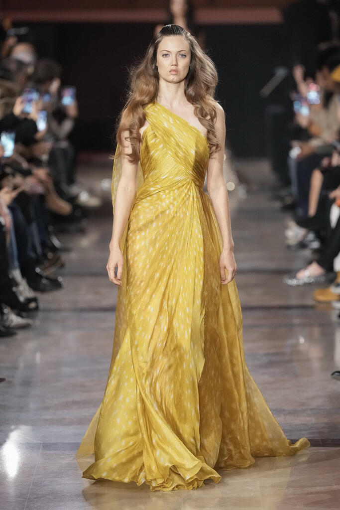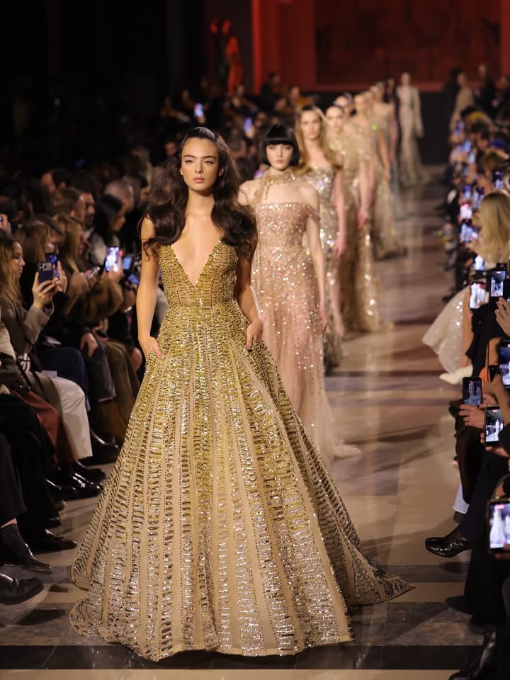 Elie Saab a signé un défilé incandescent, où la nostalgie ne fige rien, où le passé devient matière à rêver. Une collection qui danse entre mémoire et lumière, et qui laisse derrière elle un sillage doré, comme une nuit d’été qu’on n’a pas envie de voir finir.