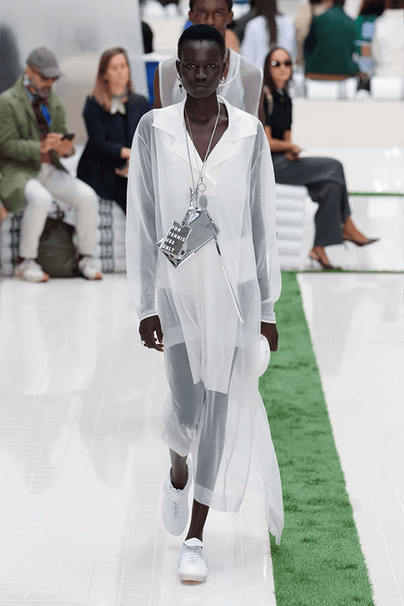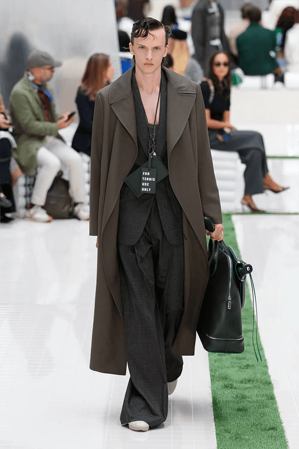 Le show se clôt sur une note poétique : des silhouettes tachées d’herbe, comme après un match gagné sur le gazon. Une manière de dire que le style, comme le sport, est affaire de mouvement, de rythme, de dépassement. Avec cette collection, Pelagia Kolotouros confirme sa vision : Lacoste n’est plus seulement une marque de sport. C’est une maison qui sait jouer avec les codes, les détourner, les magnifier. Et cette saison, elle le fait avec panache, précision et une joie contagieuse.