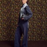 Le défilé s’ouvre sur un carré d’herbe sèche, des murs tapissés de motifs trop vifs, et une vidéo où une femme tente de travailler au fond d’une piscine. Le ton est donné : la collection sera celle d’un monde qui se dérègle, d’un quotidien qui se délite.
