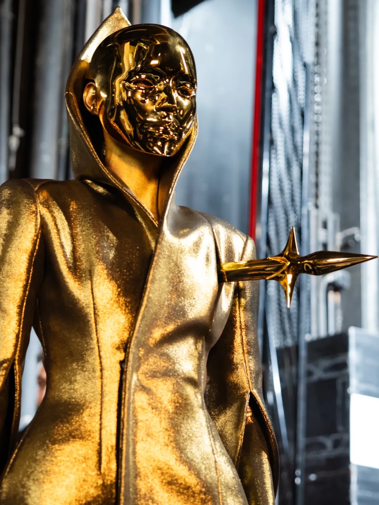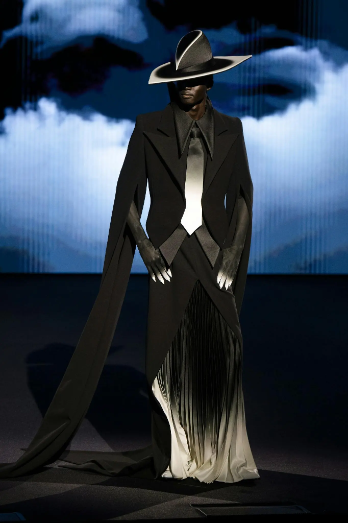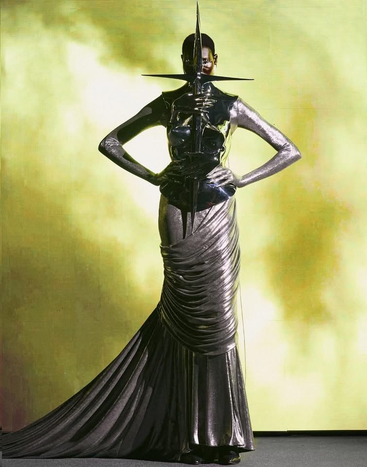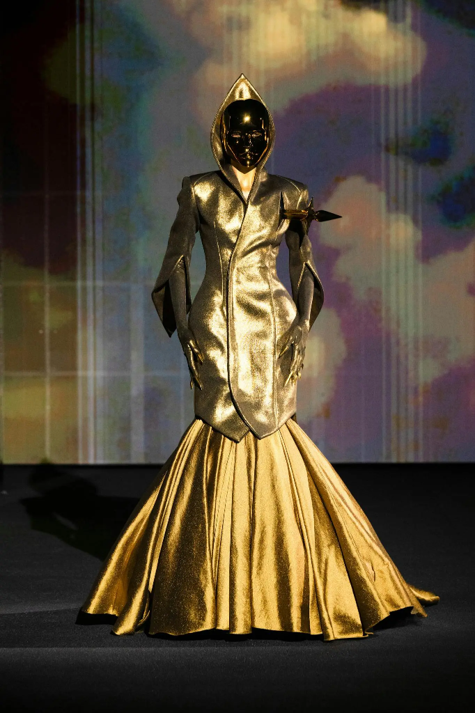 Le dernier acte ressemblait à un champ de bataille. Les silhouettes étaient transpercées de flèches et d’épées, comme si Robert Wun avait dû se transformer en guerrier pour défendre la pureté de sa vision. Mais aucune défaite ne planait. Au contraire. La scène s’est ouverte sur une robe de bal céleste, scintillante, presque cosmique. Une robe qui semblait contenir des galaxies entières. Le triomphe après la tempête. L’idée devenue forme. Le rêve devenu matière.