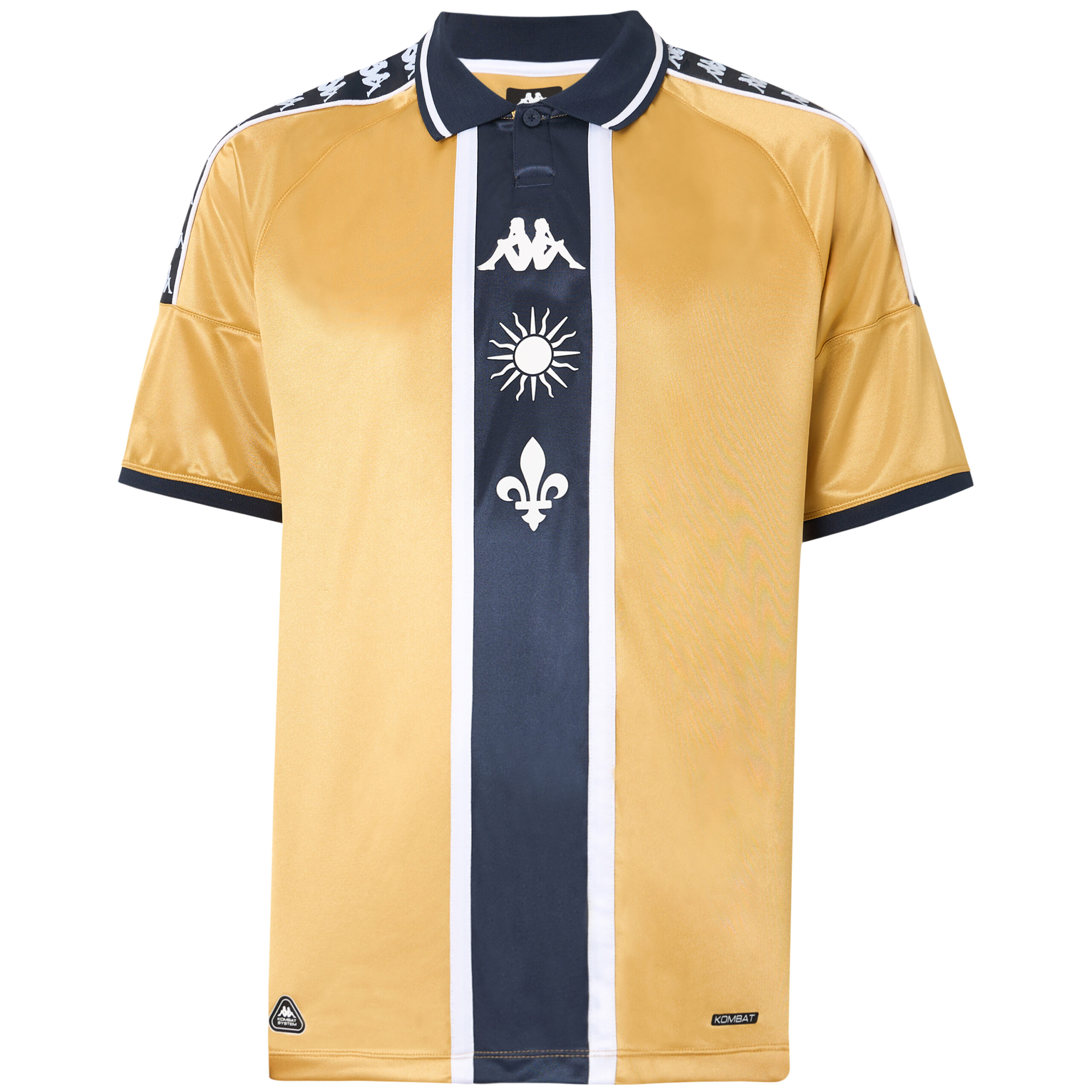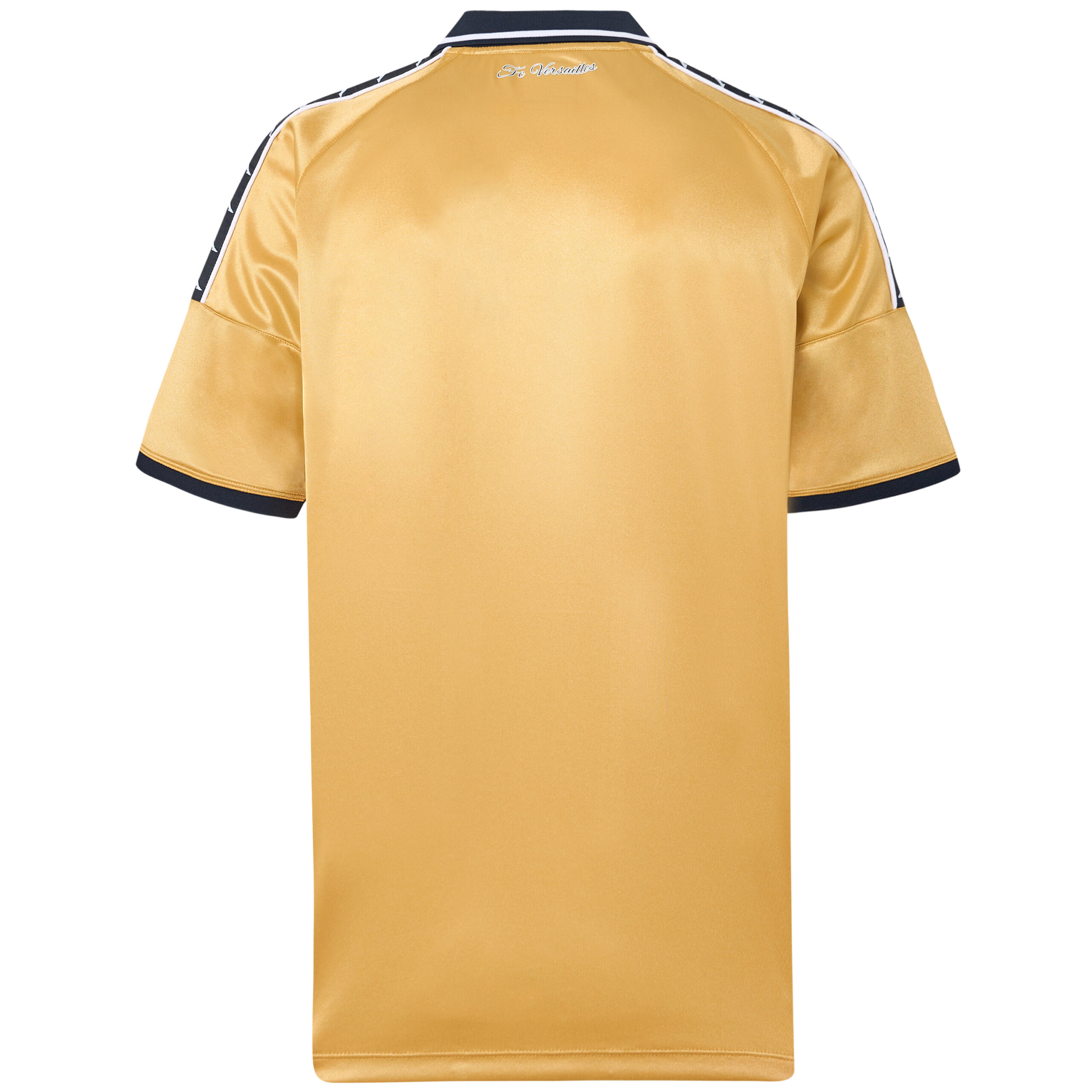 À quelques centaines de kilomètres, le FC Versailles a choisi une autre voie. Avec Kappa, le club dévoile deux maillots dorés pour la saison 2025-26. Le premier, „Élégant“, puise son inspiration dans l’architecture du château, avec des lignes verticales ton sur ton et un gaufrage discret. Le second, „Audacieux“, ose une bande bleu marine encadrée de blanc, ornée de symboles forts : fleur de lys, soleil, héritage royal. Ces maillots ne sont pas seulement destinés au terrain. Ils se portent aussi dans la rue, dans la vie quotidienne, comme des pièces de mode. La couleur or, commune aux deux modèles, incarne l’excellence et le prestige, en écho au patrimoine de Versailles et aux ambitions sportives du club. Ambitions portées, entre autres, par l’actionnariat du pilote de Formule 1 Pierre Gasly.