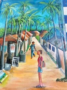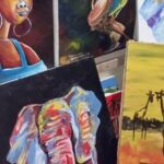 Hassan ou Mannext n’a pas appris à peindre dans une école. Il a appris dans la rue, sur les murs, sur des bouts de masonite, sur des fragments de céramique. À dix ans, il dessinait déjà des animaux, des scènes de vie. Il se trompait souvent, mais il recommençait. Ses erreurs sont devenues ses maîtresses. Aujourd’hui, ses œuvres étonnent par leur force, leur sincérité, leur inventivité. On les retrouve sur des toiles, des objets, des murs, parfois même sur des meubles. Tout support devient prétexte à création. Son style est brut, vibrant, profondément africain. Il peint comme on respire, comme on chante, comme on raconte une histoire au coin du feu.