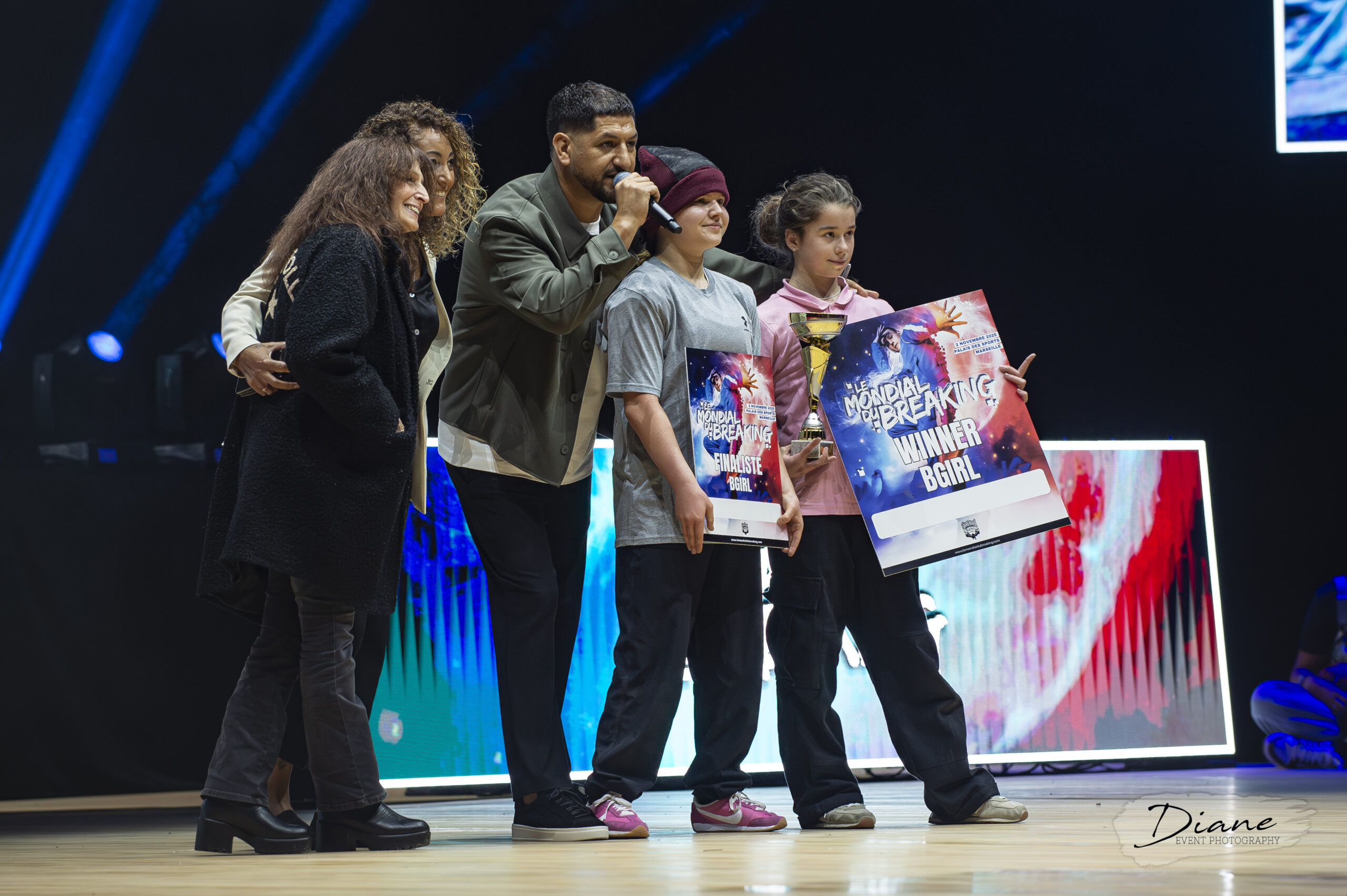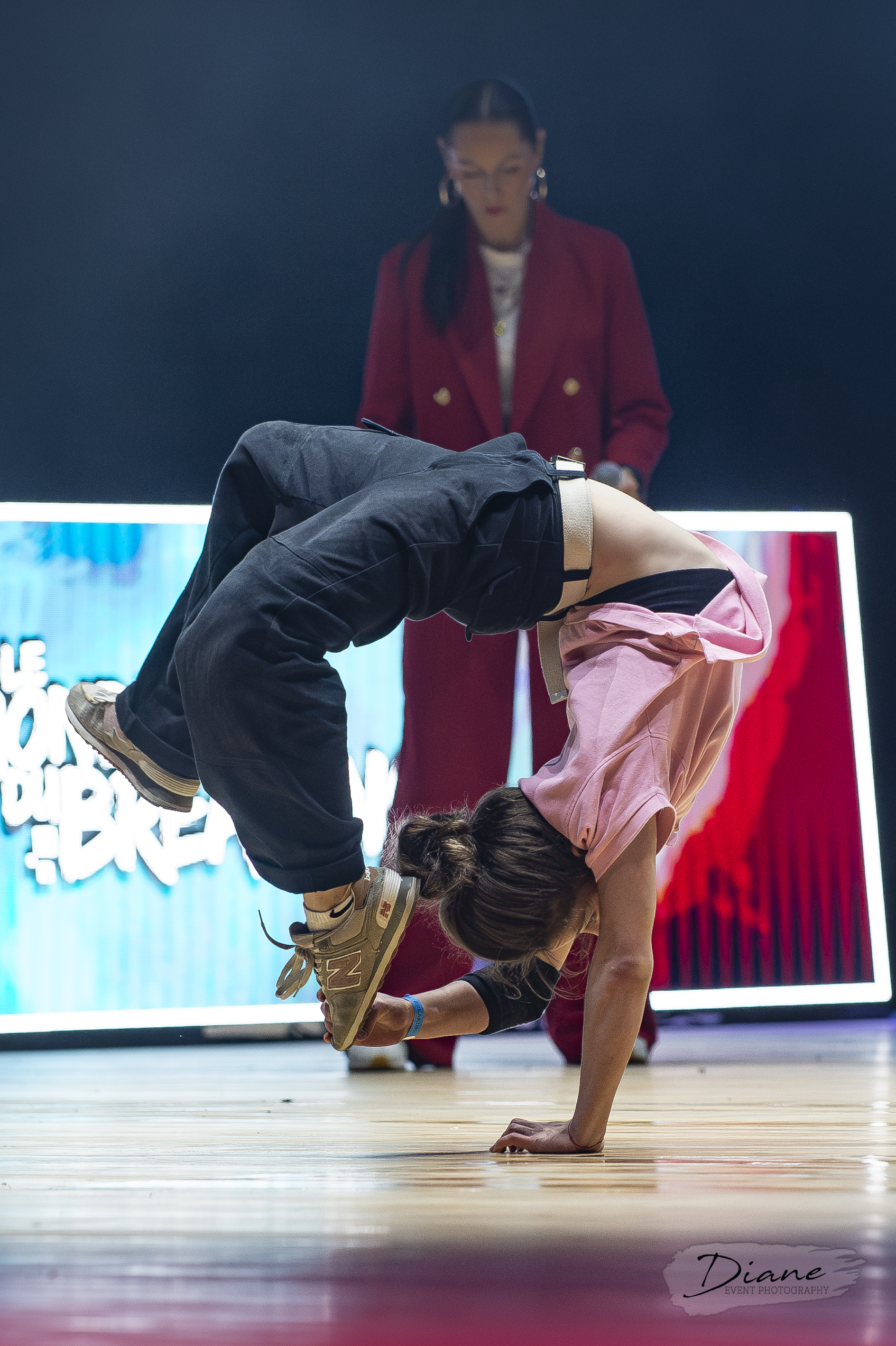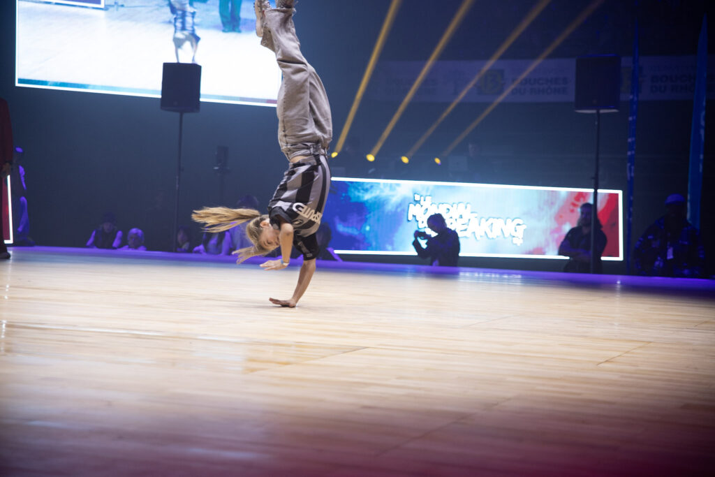 Dans la catégorie Bgirl, une autre révélation a marqué les esprits. Arisha, jeune breakeuse sibérienne au talent hors norme, a livré des performances incroyables pour son âge. Sa maîtrise est rarement vue dans le monde du breaking. Des freezes venus de l’espace, une souplesse et une force de titan dans un corps d’enfant. Elle a bouleversé le public, rappelant que le futur du breaking est déjà là, et qu’il danse avec une intensité cosmique. En finale, elle s’est imposée face à la breakeuse suédoise au style dynamique et punchy, Bgirl Emina.