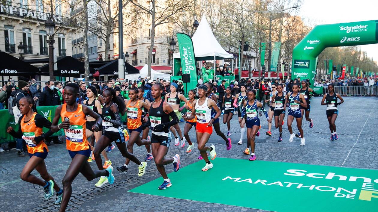 Runners compete in the 45th Paris Marathon