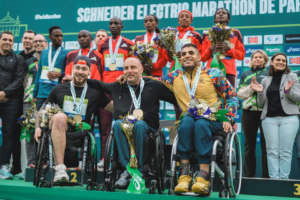 Chez les athlètes handisport, Julien Casoli a une nouvelle fois marqué l’épreuve en remportant sa 6ᵉ victoire, en 1 h 33 min 3 s, devant le jeune espoir Thibault Daurat. Un duel au sprint qui a couronné l’un des visages incontournables du marathon parisien en fauteuil.