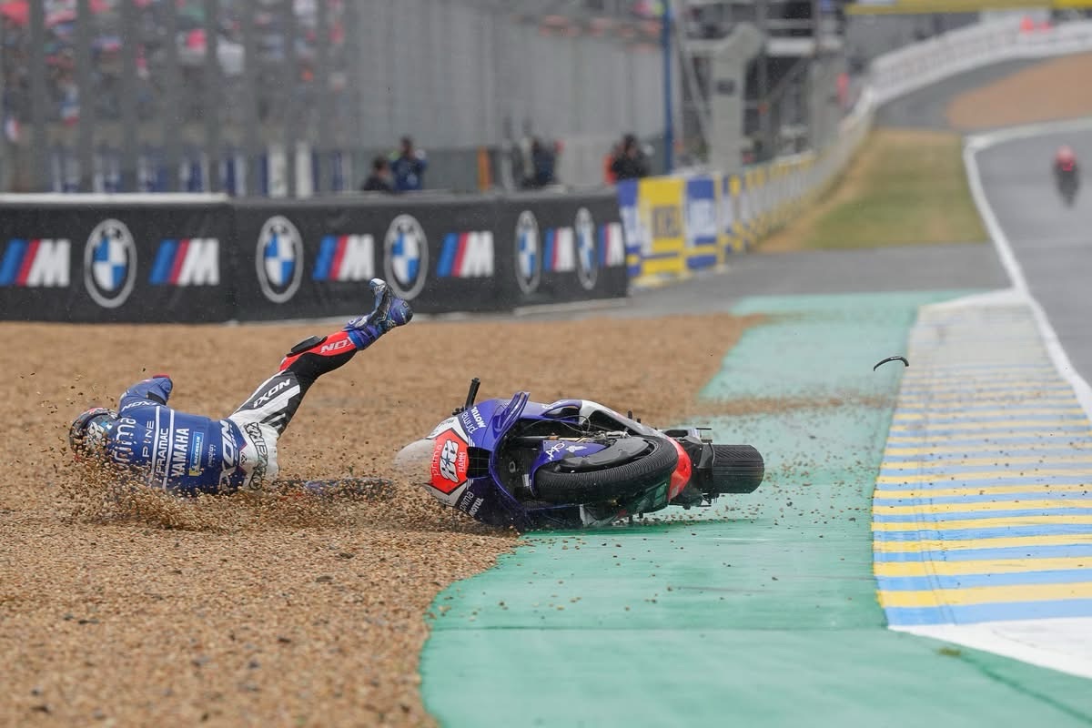 Fabio Quartararo fut le premier à effectuer sa pénalité de Long Lap, tombant à la 5ᵉ position. Malheureusement, quelques tours plus tard, il a perdu le contrôle au même moment que Brad Binder (KTM), avortant ses chances de marquer des points. La météo n’a pas fini de réserver son lot de surprise aux pilotes au Mans, et au septième tour, les frères Marquez, alors en tête, imitent le choix de Pedro Acosta (KTM) et Maverick Vinales (KTM) en rentrant en stand pour changer à nouveau de type de pneus, et repasser aux pluies. À ce stade de la course, le premier pilote du classement à être équipé du type de gommes optimal n’est autre que Johann Zarco (Honda LCR). Le n° 5 a connu un départ compliqué, et l’incident qui a impliqué Pecco Bagnaia, Joan Mir et Enea Bastianini (KTM) l’a obligé à passer par le bac à graviers.