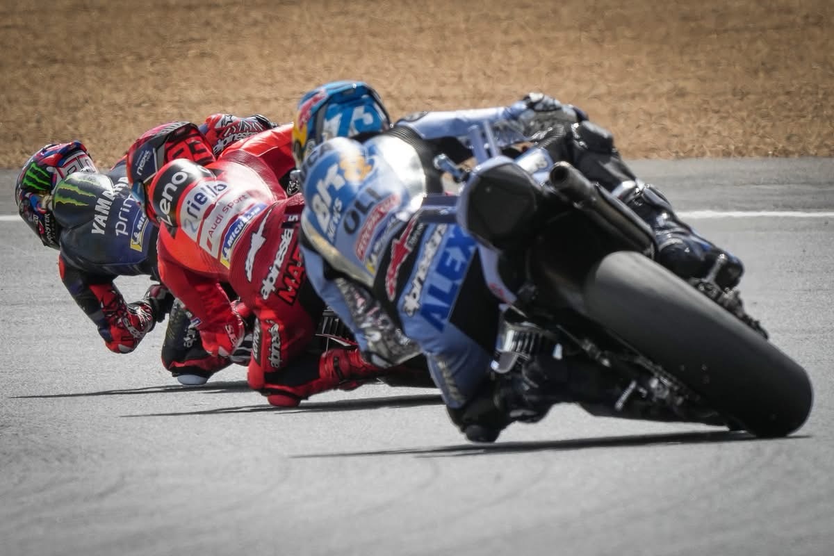 Sur une piste idéale, Fabio Quartararo s’élance parfaitement au départ, conservant son leadership malgré une pression immédiate exercée par Marc Márquez. Sous les acclamations du public français, le pilote Yamaha boucle le premier tour en tête avec 6 dixièmes d’avance sur les frères Márquez. Mais la tension monte dès les premiers instants. Pecco Bagnaia (Ducati) en difficulté depuis les qualifications, voit sa course Sprint basculer à l’entrée de la courbe Dunlop, lorsque sa Ducati se dérobe, l’envoyant dans le gravier. Un coup dur pour le double champion du monde, qui abandonne ses espoirs de podium.