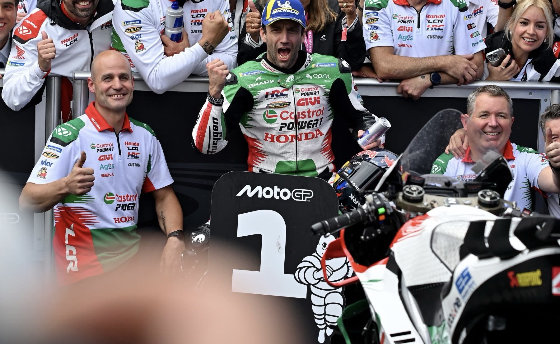 „C’est difficile à croire ! Je ne comprends toujours pas ce qu’il se passe, a avoué le vainqueur. Les derniers tours étaient très longs. J’ai besoin d’un peu de temps, c’est magique ! Avec les pneus pluie au début, c’était délicat, il fallait contrôler, je ne voulais pas les brûler. La pluie est arrivée ensuite, c’était de mieux en mieux. Marc était rapide, mais au vu de l’écart, il ne me restait plus qu’à contrôler.“ Une course folle, une victoire éclatante, un moment historique. Johann Zarco entre définitivement dans la légende du MotoGP !