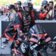 „Je me sens si bien parce que les qualifications ont été difficiles. Hier, j’ai perdu confiance, mais nous savions qu’en FP4 notre rythme était fort avec le médium, je me sentais bien. Je vais être court, je veux remercier les fans, c’est la première fois que nous les avons avec nous en présentiel. C’est aussi le Grand-Prix d’un de mes sponsors Monster Energy, c’est génial de gagner pour eux, ma famille et mon équipe. Et aussi pour mon mécanicien, qui n’a pas pu venir, Daniele, donc je lui dédie cette victoire, et j’ai hâte d’être avec l’équipe pour fêter ça !“