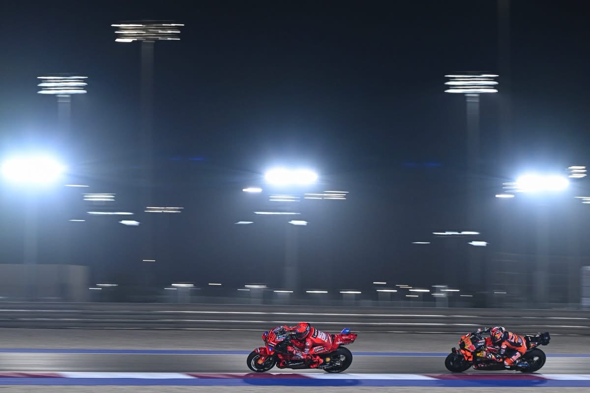 Dans l’éclat des projecteurs de Losail, Marc Márquez poursuit son incroyable série de victoires, s’imposant une nouvelle fois face à son frère cadet Álex Márquez. Un 5ᵉ doublé consécutif pour les deux pilotes espagnols, qui dominent la saison 2025 avec une maîtrise indiscutable.