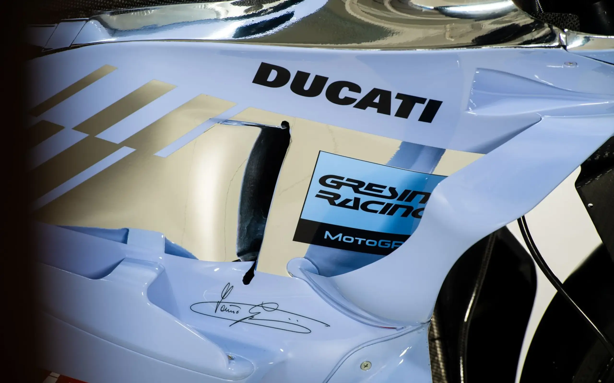 Gresini, équipe satellite de Ducati, conserve son emblématique livrée bleu pastel, agrémentée de touches de rouge et de noir. Une identité adoptée en 2022, année marquant la fin de son partenariat avec Aprilia et son retour au statut d’équipe indépendante.
