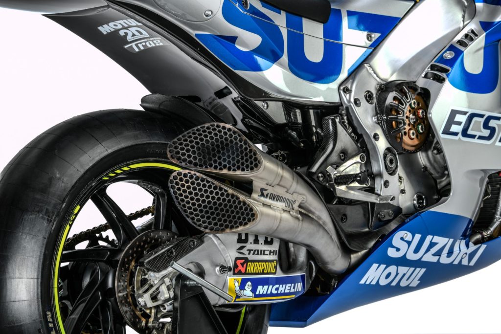 Bien sûr, le bleu vif continue de dominer, mais sur les côtés, la couleur argent est prédominante,encadrant désormais le nom de l’équipe „Suzuki Ecstar“. Une étape que le nouveau schéma de couleurs devrait rendre hommage à une belle histoire qui a débuter en 1960 avec la participation au Tourist-Trophy de l’île de Man,, où seulement deux ans plus tard, le pilote allemand Ernst Degner a remporté la première course GP pour Suzuki et également le premier titre mondial dans la catégorie des années 50. Depuis lors, Suzuki a connu un certain succès en tant que constructeur, même après son retour en 2015.