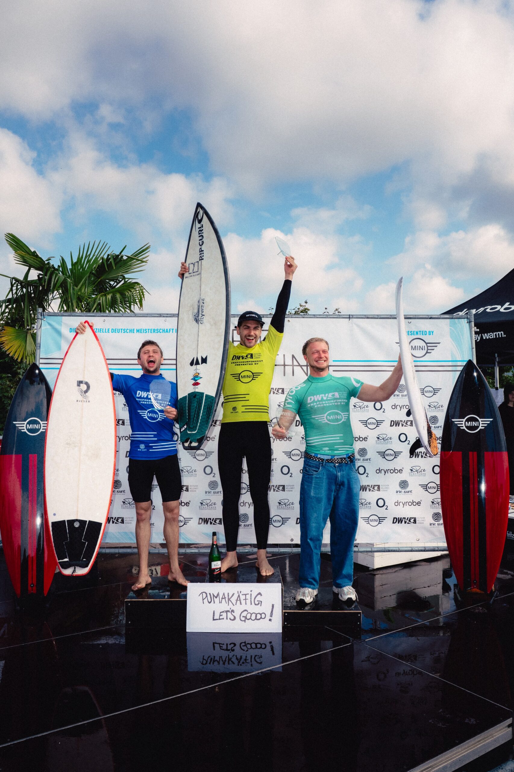 Lennard Weinhold, who also took the men’s title for the second consecutive year, was delighted: „It was an incredible final with my best friends, and the wave is ultra-cool. Defending my title is very, very special; I am incredibly proud. All the hard work has paid off!“