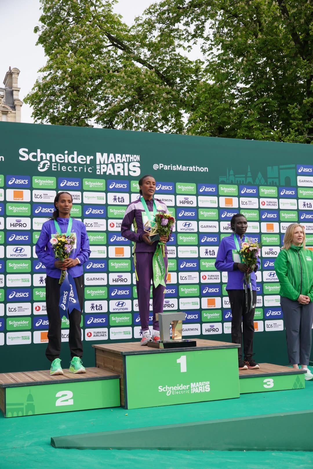 Chez les hommes, la bataille a été rude. À l’approche du 40ᵉ kilomètre, ils étaient encore plusieurs à pouvoir rêver de victoire. Yemaneberhan Crippa, Sila Kiptoo, Bayelign Teshager, Mohaled Ismail Fatah. Un groupe compact, tendu comme un arc. On sentait que tout pouvait basculer d’un instant à l’autre. Et puis, dans les rues proches du Trocadéro, Yemaneberhan Crippa a décidé que ce serait maintenant. Une attaque sèche, tranchante. Le genre d’accélération qui ne laisse pas le choix. Bayelign Teshager a tenté de suivre, un temps seulement. Derrière, les écarts se sont creusés comme des fissures dans l’asphalte. Yemaneberhan Crippa a filé vers la victoire, porté par une allure presque irréelle. Il coupe la ligne en 2 h 05′ 18, record personnel, sourire immense. Bayelign Teshager, Sila Kiptoo complètent le podium. Et dans le clan français, Emmanuel Roudolff-Levisse signe un superbe chrono sous les 2 h 06 Une performance qui compte.