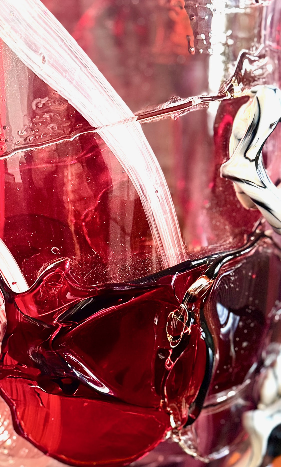 L’intensité vibrante : Un rouge pulsante et éruptif, comme si le mouvement du magma était conservé à jamais dans le verre.